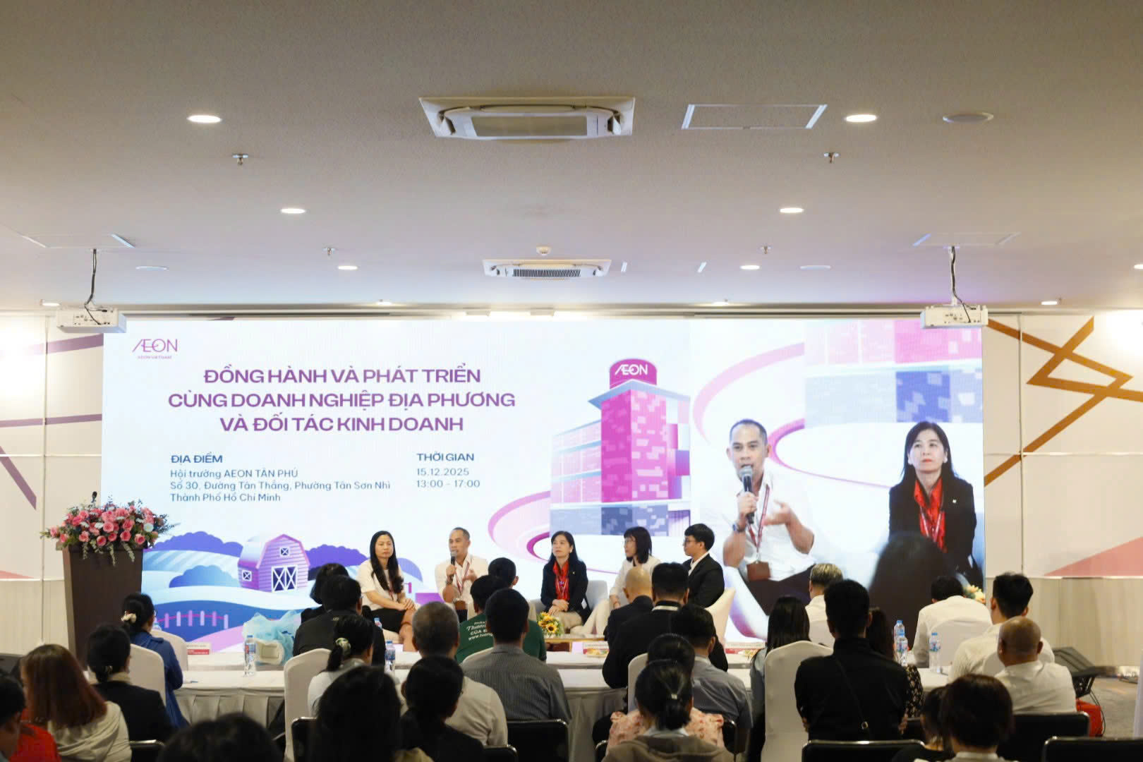 Các đại diện của AEON giải đáp các vướng mắc và khó khăn cho doanh nghiệp địa phương tại sự kiện "AEON Việt Nam đồng hành và phát triển cùng doanh nghiệp địa phương và đối tác kinh doanh."