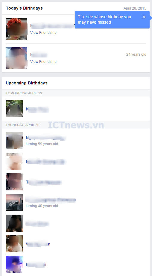 Mỗi ngày, facebook đều thông báo có những ai trong friendlist có sinh nhật