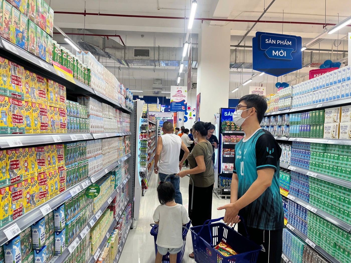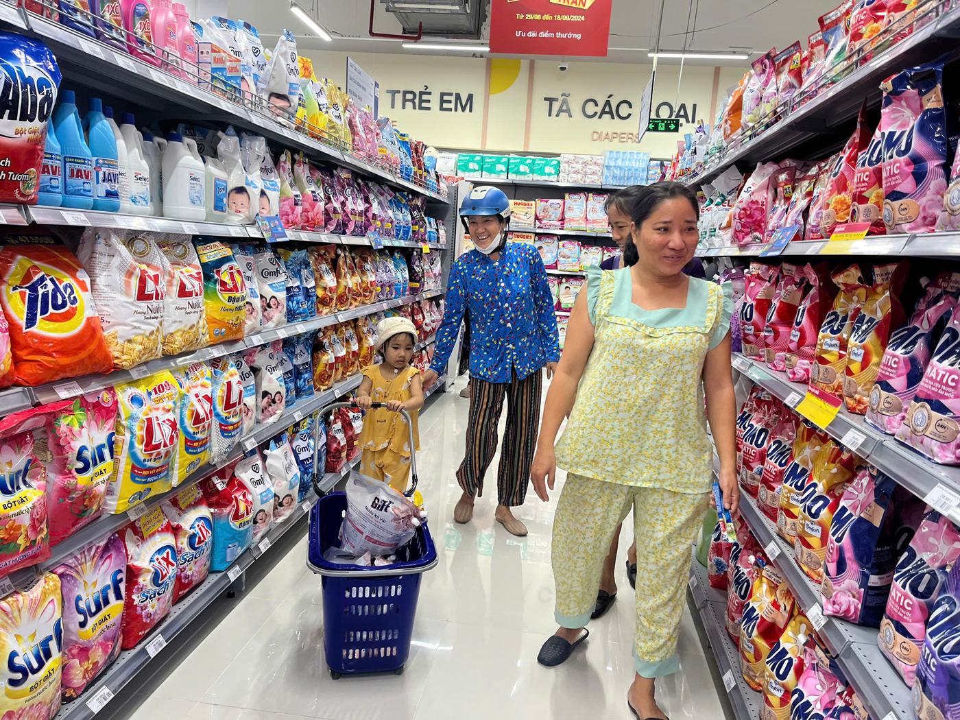 Gần 10 giờ sáng ngày 6-9, cô Tiêu Thúy Việt, 73 tuổi, cư dân block B chung cư Green River, cầm giỏ đựng hàng dạo quanh siêu thị để mua thực phẩm nấu ăn cho gia đình. Dừng lại ở quầy cà chua, cà rốt, dưa leo… đang giảm giá còn đồng giá 11.900 đồng/kg, cô Việt chọn những quả cà còn xanh nhất để mua. “Bình thường cà chua có giá gần 40.000 đồng/kg, nay siêu thị bán rẻ quá nên tôi vẫn tranh thủ mua thêm” – cô Việt vui vẻ nói.