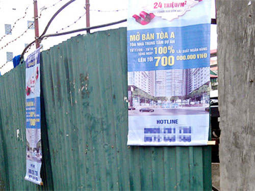 Quảng cáo căn hộ được treo khắp nơi, với nhiều ưu đãi vẫn chưa thu hút khách