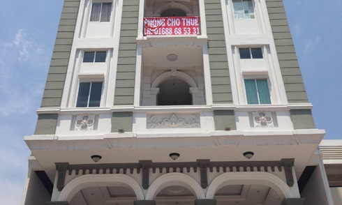 Nhìn bề ngoài, tòa nhà giống cao ốc văn phòng, cách khu Phú Mỹ Hưng chưa đầy một cây số. Nhưng chủ nhà quảng cáo dành để cho thuê phòng trọ.