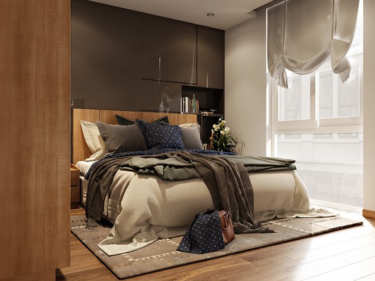 1. Phòng ngủ sang trọng với chất liệu từ gỗ màu nâu sữa