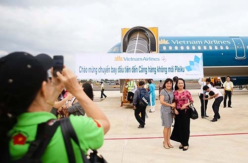Vietnam Airlines chào mừng những hành khách đầu tiên đến Cảng hàng không Pleiku