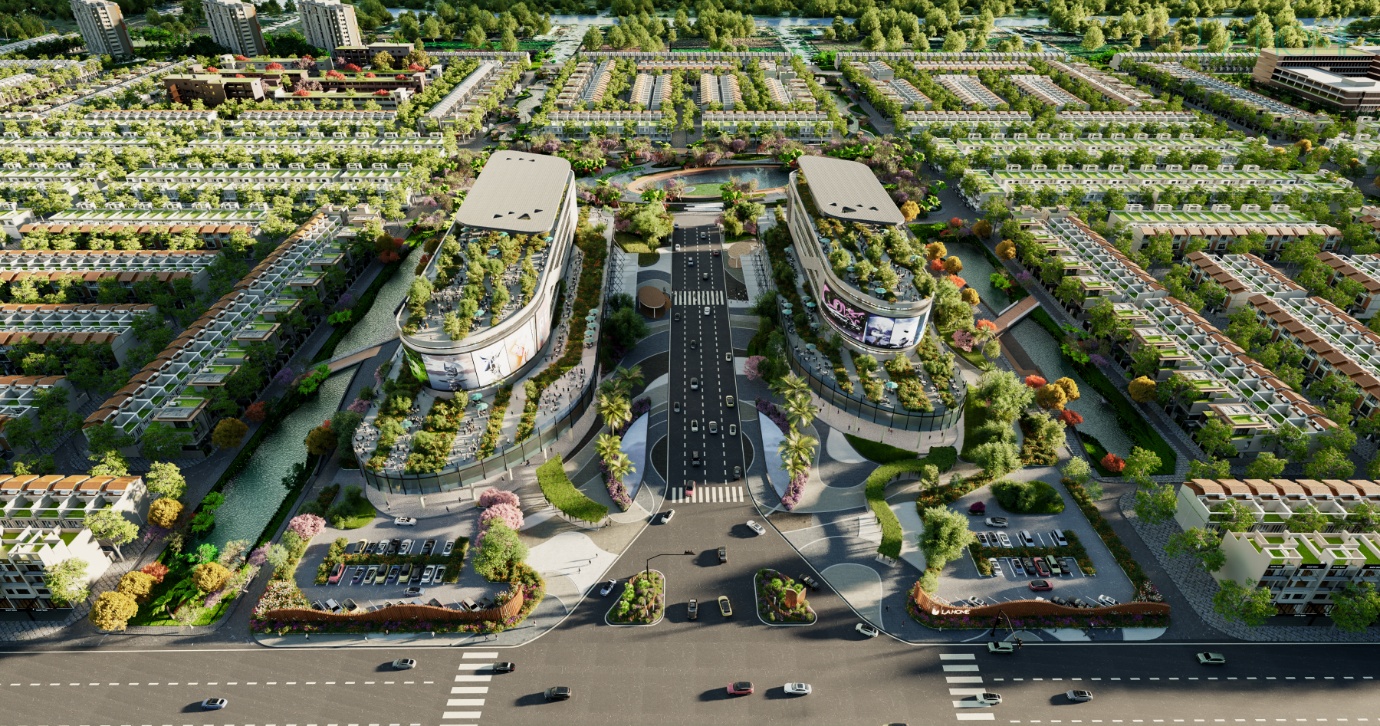 Dự án được quy hoạch với hệ thống kênh đào tự nhiên cùng các công viên nội khu, tạo nên cảnh quan sinh thái đặc trưng. Việc đưa yếu tố sông nước vào thiết kế không chỉ mang lại giá trị thẩm mỹ mà còn góp phần điều hòa vi khí hậu, cải thiện chất lượng không khí.