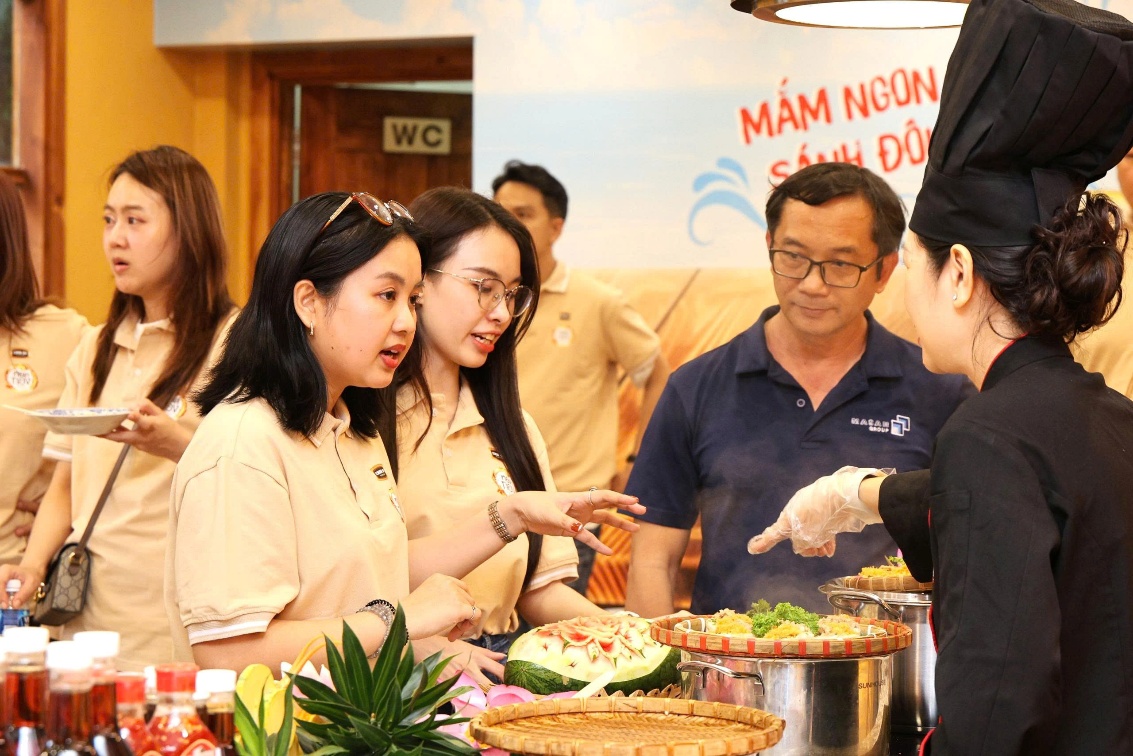Tại đây, Ban giám đốc Masan PQ đã chia sẻ về quy trình ủ chượp nghiêm ngặt suốt 9-12 tháng trong hệ thống với gần 500 thùng. Mỗi giọt nước mắm là kết tinh từ bí quyết trăm năm của ngư dân bản địa, cá cơm sau khi đánh bắt được trộn muối ngay trên thuyền theo tỷ lệ 3 cá 1 muối để đảm bảo độ tươi, sau đó đưa vào thùng ủ trong thời gian đủ dài để chắt lọc ra những giọt cốt mắm thơm ngon, đậm đà.