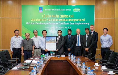 Theo báo cáo từ hệ thống theo dõi thiết bị tại Nhà máy Đạm Phú Mỹ, xưởng sản xuất NH3 của nhà máy đã hoạt động ổn định trong 279 ngày đêm không ngừng nghỉ (từ ngày 21-9-2015 đến 27-6-2016), phá vỡ mốc thành tích 188 ngày đạt được trước đó vào ngày 28-3-2013.