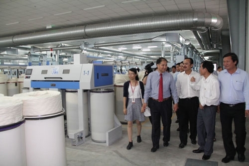 Đại diện UBND tỉnh Long An tham quan dây chuyền kéo sợi của Tập đoàn Huafu