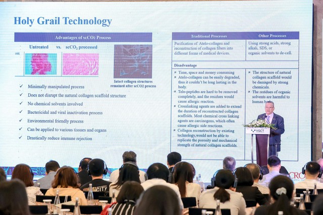 Trước bài toán này, VGCT và Acro Biomedical - đối tác lâu dài của VGCT đã chủ động nghiên cứu và phát triển công nghệ giác mạc sinh học với nguồn động vật là lợn. Lần đầu tiên, giác mạc lợn được xem như một vật tư y tế giúp bệnh nhân mù tìm lại ánh sáng, trở thành một công nghệ mới độc quyền vươn tầm khu vực ASEAN.