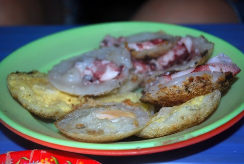 Nguyên liệu làm món này là mực tươi làm nhân bánh, ăn cùng rau sống, nước mắm chua cay. Giá bánh xèo mực rất bình dân. Đa số quán bán vào buổi tối.