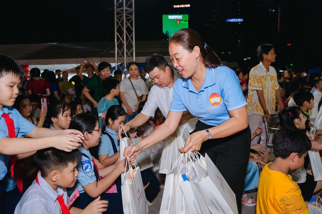 Đại diện EVNGENCO3 và UBMTTQVN Phường An Khánh trao quà cho thiếu nhi trong chương trình "Đêm hội trăng rằm"