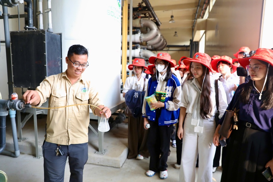 Các thủ khoa đang tham quan và tìm hiểu qui trình xử lý chất thải tại VWS