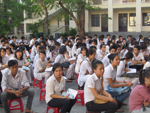 Thí sinh tranh thủ ôn bài trước giờ thi tại HĐT Trường THPT Trần Phú – Đà Nẵng