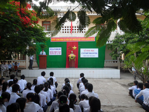 Sau lễ chào cờ, khai mạc, đại diện hội đồng coi thi đã thông qua nội qui, qui chế, đồng thời động viên nhắc nhở các thí sinh tự tin, bình tĩnh trong khi thi để làm bài đạt kết quả cao nhất.