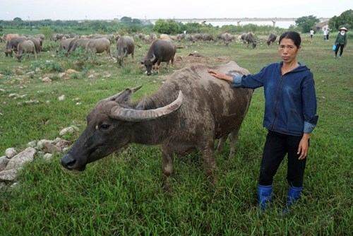 Vợ chồng anh Tiến - chị Hải (Long Biên, Hà Nội) cũng là một thành công trong chăn nuôi nông nghiệp. Từ một con trâu, hai vợ chồng anh đã gây dựng được đàn trâu lên tới gần 200 con , chăn thả ở bãi giữa sông Hồng.