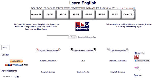 Với kinh nghiệm 10 năm hoạt động, Learn English Free Online là một nguồn tài liệu phong phú dành cho cả học sinh và giáo viên về: phương pháp học từ vựng có tranh ảnh kèm theo, các bí quyết học tiếng Anh độc đáo, nhiều bài kiểm tra thú vị…