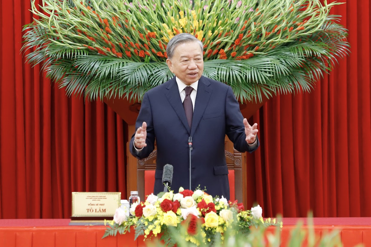 Tổng Bí thư Tô Lâm phát biểu tại buổi gặp mặt thân mật với 95 Nông dân Việt Nam xuất sắc, Nhà khoa học của nhà nông. Ảnh: Phạm Hưng
