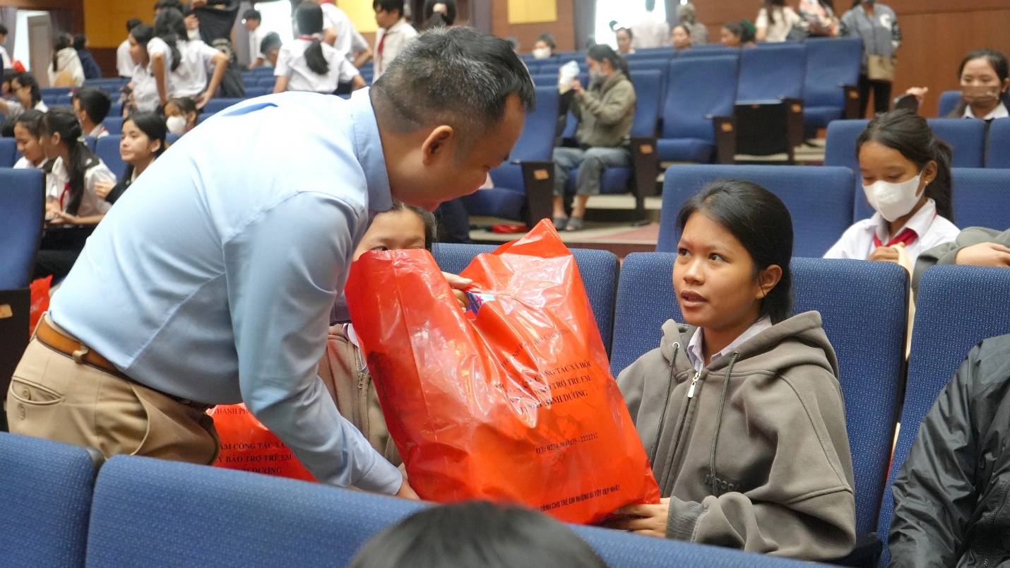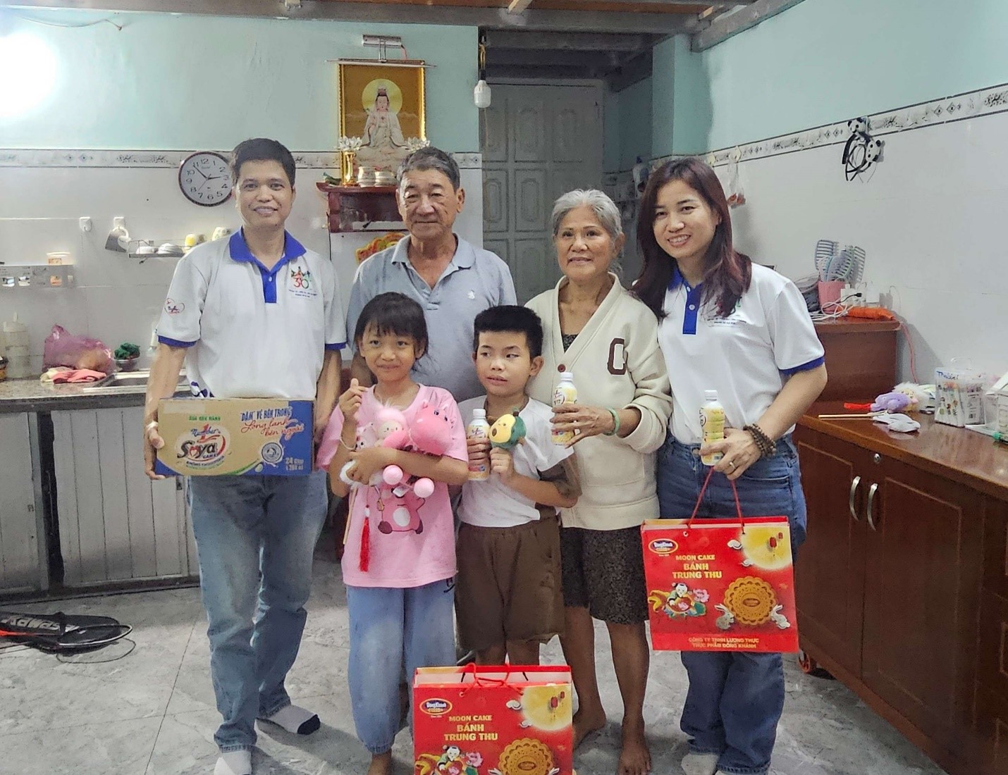 Cán bộ nhân viên Công ty Tân Hiệp Phát thăm hỏi, động viên và trao tặng quà Trung thu cho các em nhỏ trong chương trình "Cùng con đi tiếp cuộc đời" tại TP HCM.
