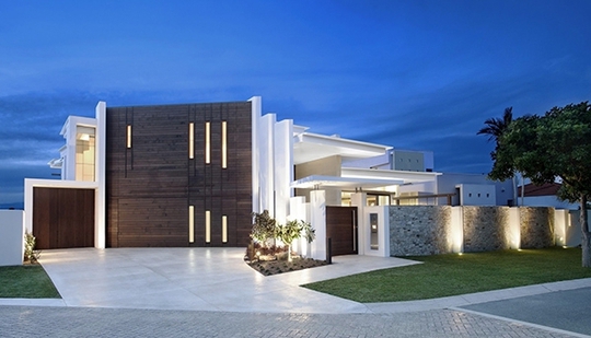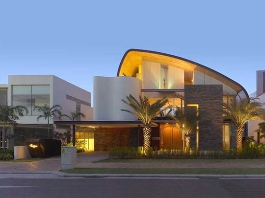 Nhà Nautical Lines - Singapore: Ngôi nhà được xây dựng theo bối cảnh biển với hồ bơi trên cao. Ánh đèn vàng phản chiếu nước hồ bơi vào ban đêm khiến căn nhà trở nên ấn tượng hơn.