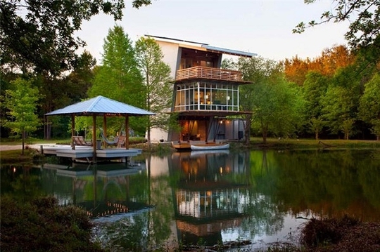 Nhà bên hồ - Louisiana: Nhà bên hồ hay Pond House được đặt ở Hammond, Louisiana nghiêm 14 độ về phía mặt nước. Đây là một trong những ngôi nhà ấn tượng nhất năm và được chia sẻ nhiều nhất.