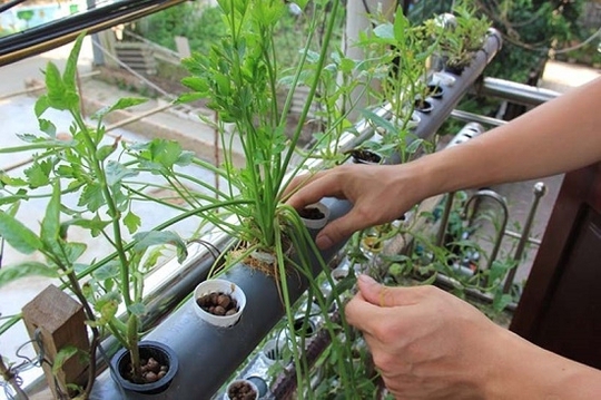 Mô hình trồng rau công nghệ thuỷ canh được nhiều người ưa chuộng bởi rau thu được hoàn toàn sạch và an toàn. Ứng dụng này là một hệ thống trồng cây trong dung dịch không tuần hoàn. So với phương thức trồng rau trong hộp, thùng xốp thì trồng rau thủy canh khá mới mẻ với chị em. Trồng rau bằng phương pháp này rất thuận tiện,bạn không phải điều chỉnh độ PH, không phải sục khí và cho nước chảy liên tục.Thủy canh rất tiết kiệm đất mà lại hiệu quả, kỹ thuật này giúp rau được cung cấp đủ dinh dưỡng, cách ly với nguồn sâu bệnh, nước ô nhiễm, tránh độc tố.