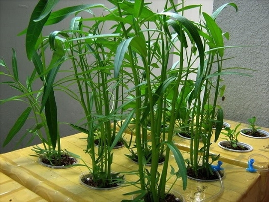 Các loại rau ăn lá đều thích hợp với môi trường thuỷ canh như xà lách, rau muống, rau dền, rau cải, rau húng,… Hạt giống được gieo trên thùng xốp, ống nhựa hoặc máng cỡ lớn. Có rất nhiều công thức để pha dung dịch thuỷ canh, để có công thức đáng tin cậy được pha trộn sẵn, bạn nên tìm những đơn vị uy tín để được tư vấn kỹ lưỡng. Rễ cây sẽ sinh trưởng phát triển nhờ hút chất dinh dưỡng từ phía dưới.