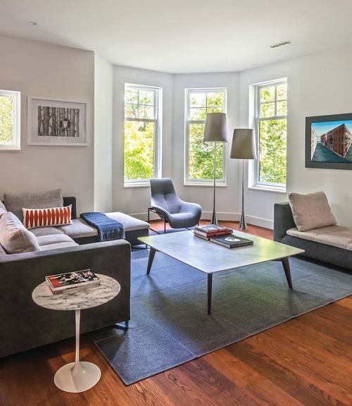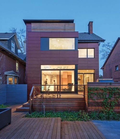 Ngôi nhà của cặp vợ chồng trẻ nằm ở Toronto, Canada. Công ty Kiến trúc Dubbeldam đã thiết kế lại ngoại thất của ngôi nhà bằng những thanh ốp gỗ cùng các khung cửa sổ bằng kính lớn. Sân sau được ốp sàn gỗ là không gian đẹp cho gia đình cùng nghỉ ngơi, thư giãn. Tâm điểm của phòng khách là lò sưởi nằm ngang và một lò sưởi tự chỉnh ở trên đó. Bên cạnh đó là một cầu thang đẹp kết nối các tầng khác nhau của ngôi nhà.