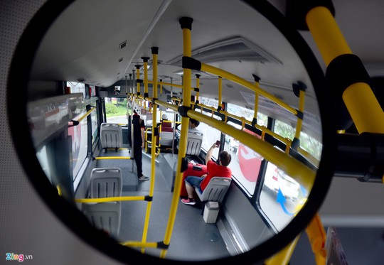 Trên trần gắn hai camera trước các cửa lên xuống để theo dõi hoạt động, an ninh, lộ trình của nhân viên và hành khách. Ngoài ra còn có nút bấm SOS để khách yêu cầu dừng xe khẩn cấp.