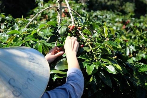 Những trái cà phê chín đỏ rực rỡ đang được thu hoạch