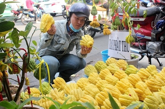 Phật thủ là loại quả được bày bán nhiều nhất, với mức giá chỉ 100.000-300.000 đồng một quả.