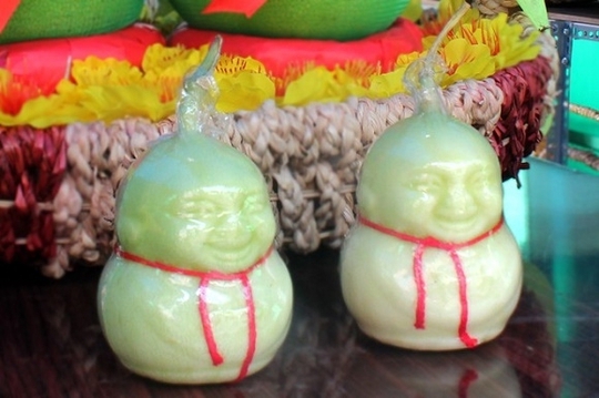 Dưa lê thần tài xuất xứ Trung Quốc có giá 200.000 đồng một cặp đang được nhiều cửa hàng trữ hàng nghìn trái để bán.