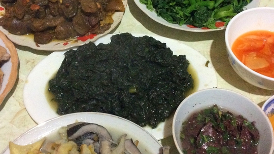 Trải qua một ngày đường với đủ mọi địa hình, từ lướt gió trên cao tốc đến lúc lắc trên đoạn đường bị cày xới, từ lội suối đến đất đỏ trơn trượt…, cuối cùng chiếc GX cũng đưa chúng tôi tới nơi mà nửa thế kỷ trước chỉ có dấu chân ngựa và hai năm trước mới có dấu xe hơi. Côn Lôn như một ốc đảo xanh bình yên…Các mái nhà sàn người Tày thấp thoáng sau những cánh đồng hoa dại tím ngắt, nhà nào cũng có ao nước nhỏ trước nhà thả cá, vườn rau sạch với bầy gà, vịt béo núng nính. Dưới cánh đồng, ngỗng từng đàn dẫn con đi ăn. Bầy trâu mập mạp đủng đỉnh dắt nhau lên núi. Và bên con suối trong leo lẻo, buổi chiều phụ nữ trong bản ra đập rêu. Nói về rêu, ở Côn Lôn, đó là món đặc sản. Một loại rêu đặc biệt chỉ có ở một khúc suối trong bản, sau khi lấy về, phải đập thật kỹ để giũ sạch đất cát, phần rêu “tinh tuyền” nắm lại bằng cái nắm tay. Rêu được xào với mỡ hoặc bọc trong lá đem nướng, lúc chín mở ra khói bốc lên cùng với mùi thơm ngai ngái, có cái gì đó giống giống vị tảo biển trong bữa ăn Nhật Bản.