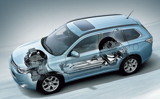 Mitsubishi Outlander PHEV là mẫu xe kết hợp giữa loại xe điện thuần túy và xe lai xăng-điện, đồng thời có thể cắm sạc từ bên ngoài.