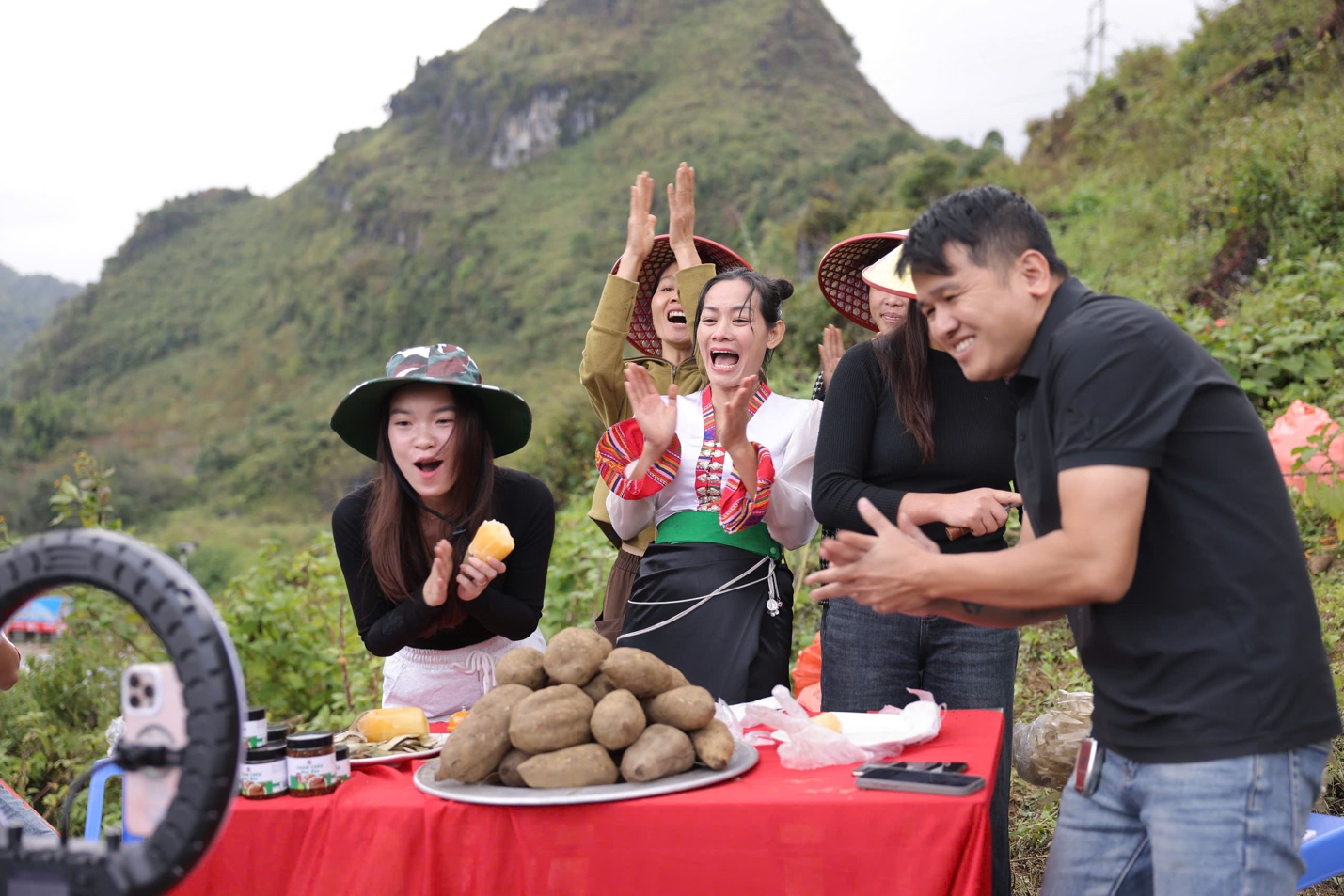 Tiêu biểu là chị Chẻo A Sun (người Dao Khâu, sinh năm 1994) - hiện kiếm gần 10 triệu đồng/tháng nhờ livestream bán nông sản. Còn chị Phạm Thị Hà, người Mường, có vườn khoai sâm lớn, định hướng bán sỉ, mỗi đơn hàng hàng trăm kg đến cả tấn. Chỉ trong 2 tháng, chị Hà đã bán được 300 tấn khoai.