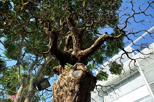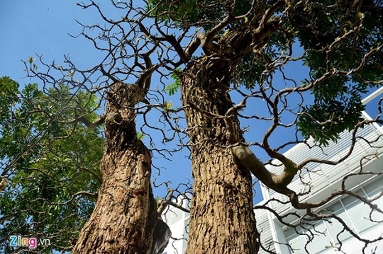 Thân cây sần sùi bởi tuổi đời đã gần 300 năm, các tán đang bắt đầu ra lá non.