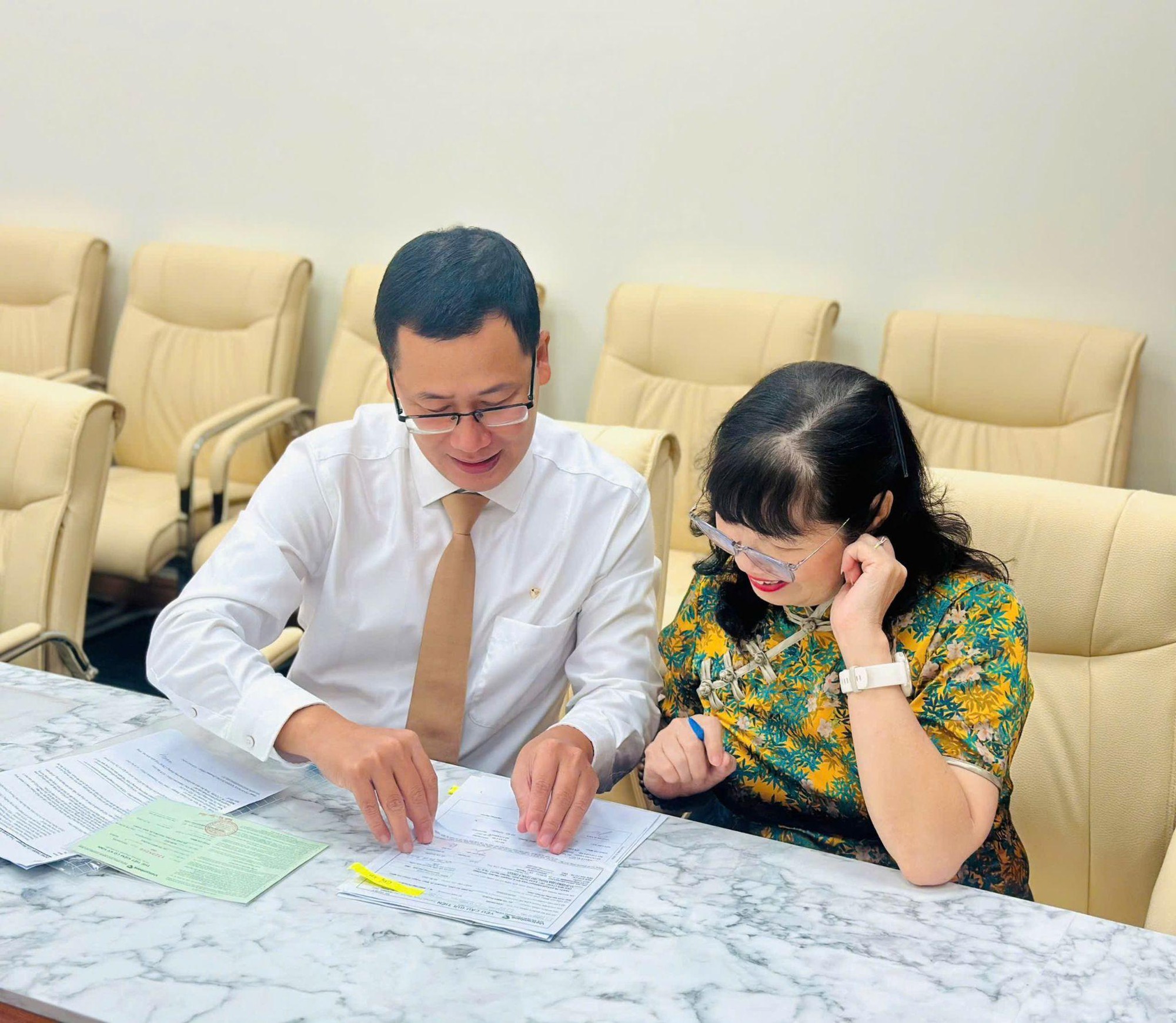 Cán bộ Vietcombank hỗ trợ chị V.T.M. Hương hoàn thiện thủ tục liên quan sau khi nhận giải.