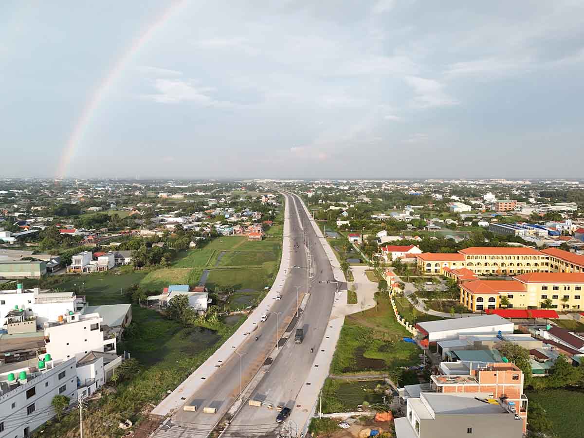 Song với tiện ích, trên công trường giao thông, tuyến ĐT823D đang hoàn thiện các khâu cuối cùng, dự kiến thông xe vào 30-4-2026, rút ngắn thời gian kết nối Vinhomes Green City với trung tâm TP.HCM còn khoảng 1 giờ 30 phút.