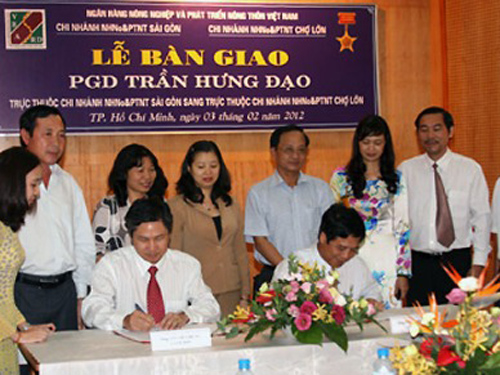 Theo đó, Ngân hàng Nông nghiệp và Phát triển nông thôn Việt Nam (Agribank) Chi nhánh Sài Gòn đã tổ chức ký bàn giao Phòng giao dịch Trần Hưng Đạo cho Agribank Chợ Lớn.