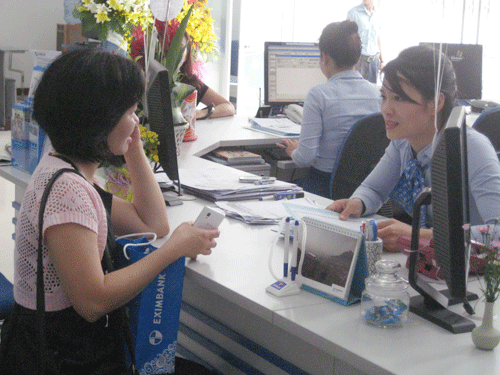Khách hàng giao dịch tại Eximbank chi nhánh Phú Mỹ Hưng vào sáng 13-11