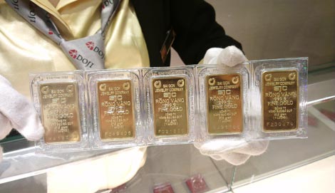 Giá vàng trong nước vẫn đắt hơn quốc tế 5,7 triệu đồng một lượng. Ảnh: AQ |
