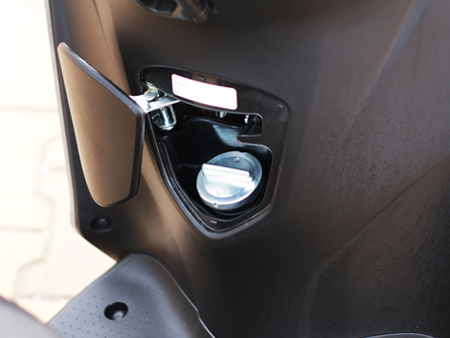 Trên một số xe ga, bình xăng đặt dưới sàn để chân, đồng thời tích hợp nắp bình ngay tại vị trí đó thực sự là một thiết kế khá “tối”. Đưa bình xăng xuống dưới sàn là một giải pháp tốt để tăng không gian cho cốp. Nhưng các kỹ sư không cần phải để nắp ngay ở vị trí đó.