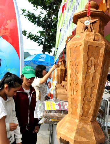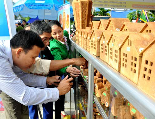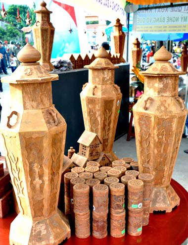 Những sản phẩm mỹ nghệ được chế tác từ vỏ cây quế Trà Bồng được trưng bày trong dịp lễ hội điện Trường Bà diễn ra tại địa phương ngày 24 đến 26-5 vừa qua.