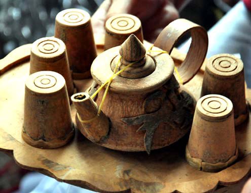 Ché rượu làm bằng vỏ cây quế lâu năm này có giá 800.000 đồng. Tháng 6-2009, Cục Sở hữu trí tuệ (Bộ Khoa học và Công nghệ) cấp chứng nhận thương hiệu quế Trà Bồng và Tây Trà. Hai địa phương này hiện có 5.000 ha quế là vùng nguyên liệu dồi dào để có thể chế tác sản phẩm mỹ nghệ phục vụ xuất khẩu. Ông Hồ Văn Thế, Chủ tịch UBND huyện Trà Bồng cho biết, những năm qua, huyện liên tục mời gọi các doanh nghiệp, tổ chức, cá nhân tận dụng nguồn nguyên liệu dồi dào tham gia chế tác sản phẩm mỹ nghệ vừa nâng cao giá trị xuất khẩu cho cây quế bản địa vừa, tạo việc làm, thu nhập cho nhiều lao động tại địa phương.
